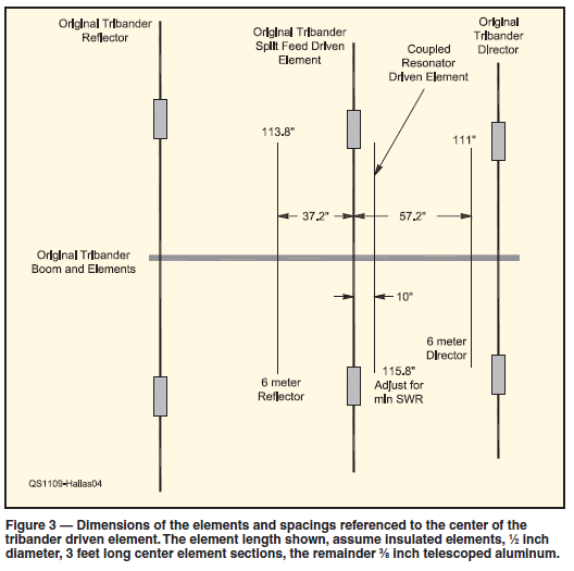 This antenna has been inspired from an article by Joel Hallas W1ZR on adding 6m to a typical tri-band yagi.